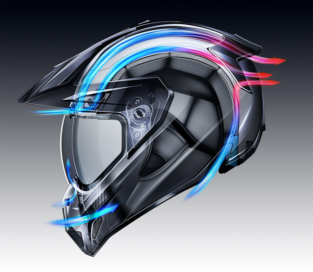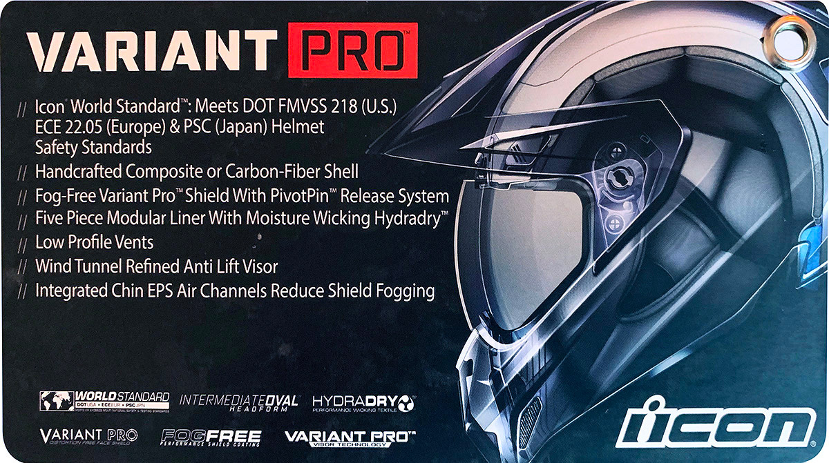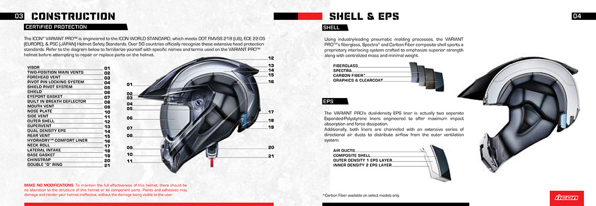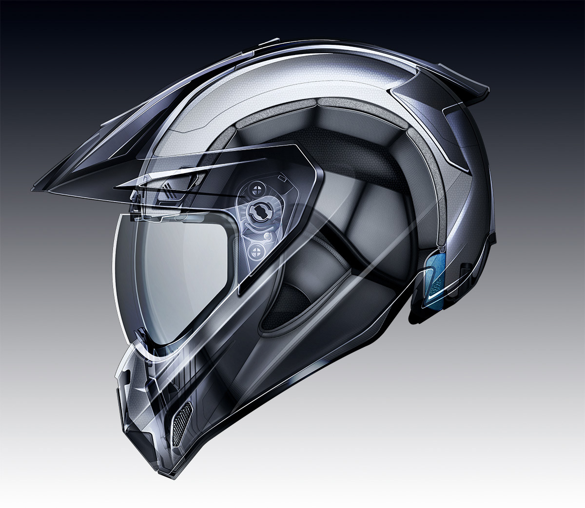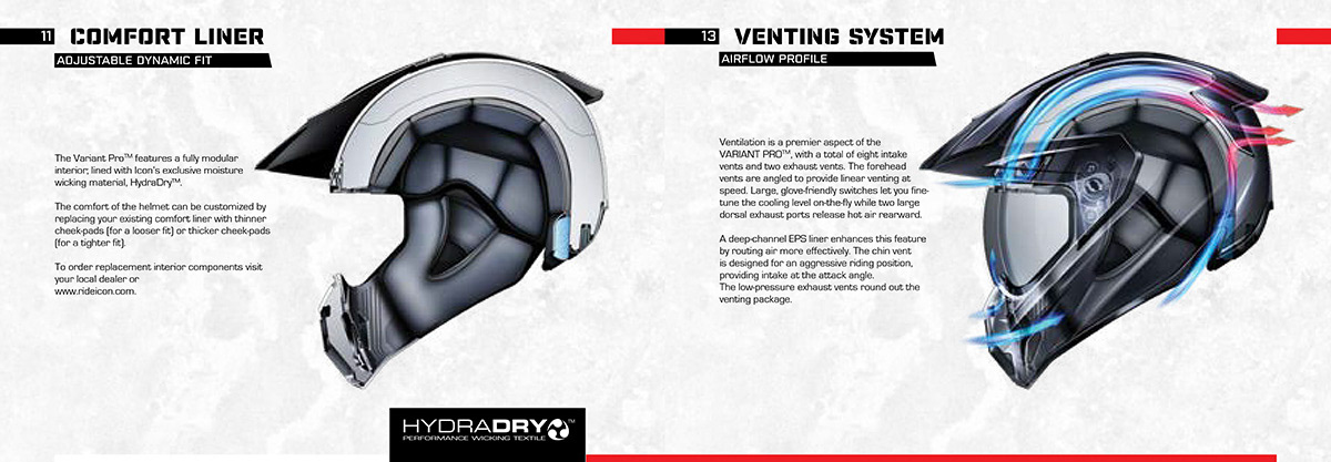 Illustrations used on the Web, Packaging, Users Manual, Hang tags and Advertising for the New ICON Variant Pro Adventure Helmet.