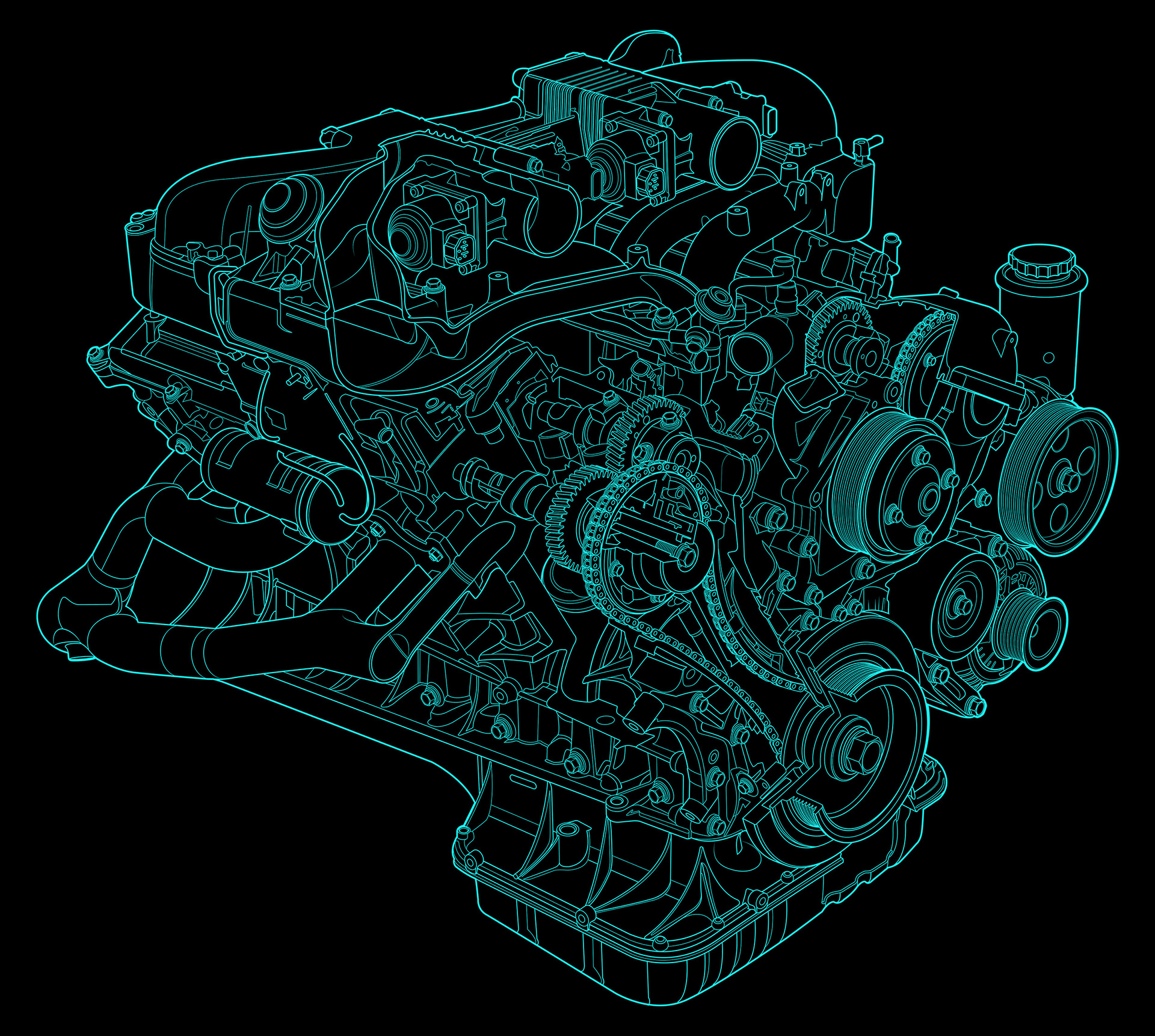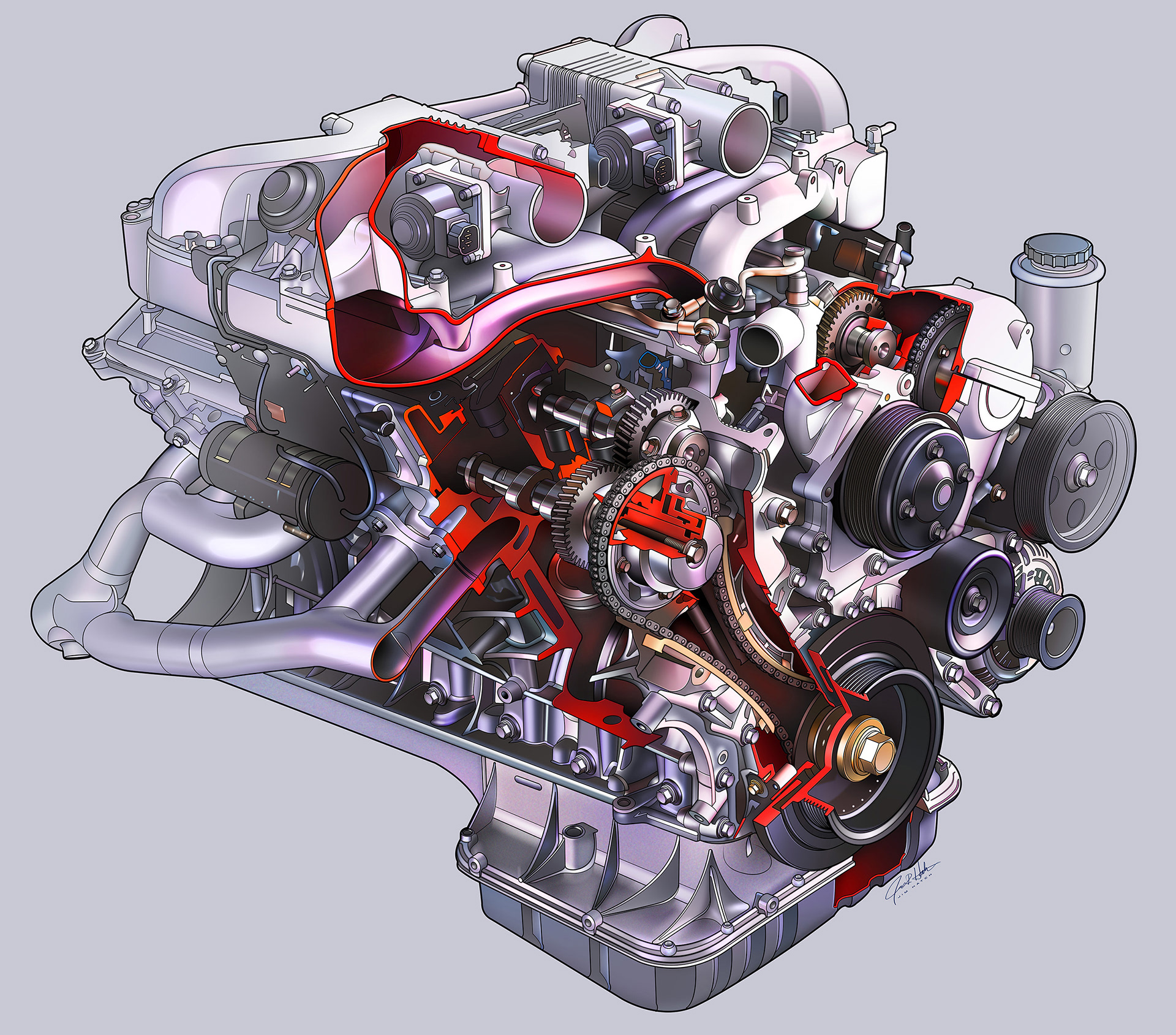 Toyota V-12 Engine Cutaway Illustration