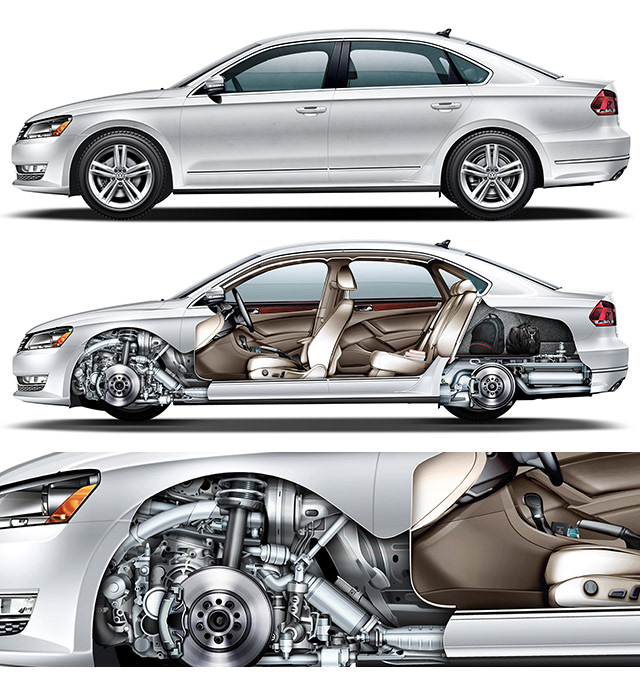 Automotive illustrations for Volkswagen used in a print and digital campaign.